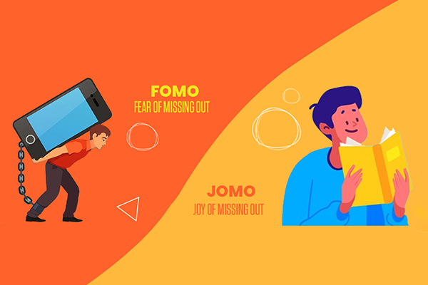 • JOMO, Joy of Missing Out: joy of doing something without worrying about what others are doing or rushing to tell others about it on social media